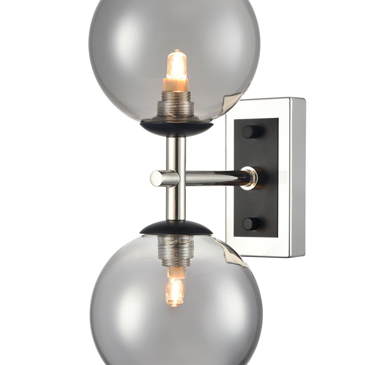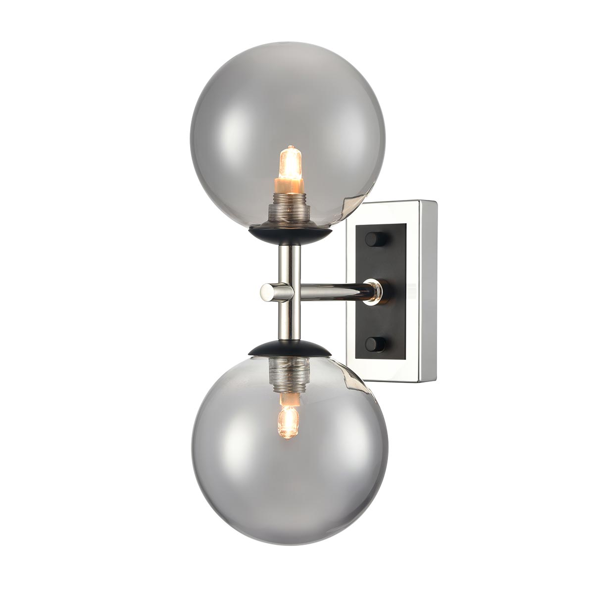 Stellar Twin Wall Light Black / Polished Nickel With Smooth Smoked Glass