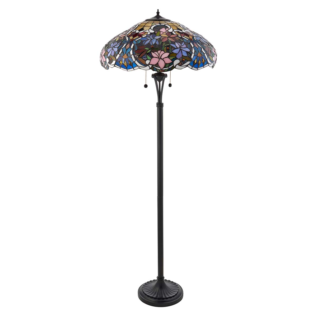Beautiful bright colours of stained-glass are plentiful in the Sullivan Tiffany lamp range. From deep reds, green, blue and amber the floral display in this Tiffany glass floor lamp will never cease to attract the eye as each colour lights up in a fascinating enchantment. Supplied with 2m of black cable, a UK plug and dual on/off pull chain switches.