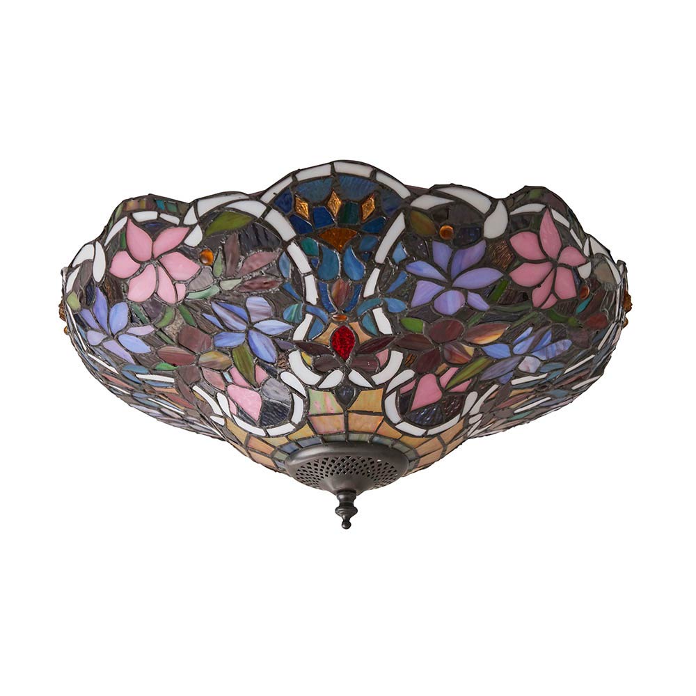 This medium flush Tiffany ceiling light is handcrafted, and the colours may vary slightly from the images shown, as each piece of glass is hand-made and may differ slightly in colour or shade. This should not be seen as a fault, rather something that makes each Tiffany shade unique.