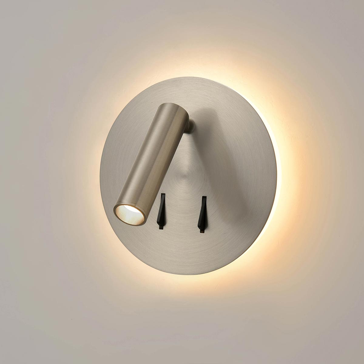Switched LED Round Backlit Bedside Wall Reading Light Satin Nickel