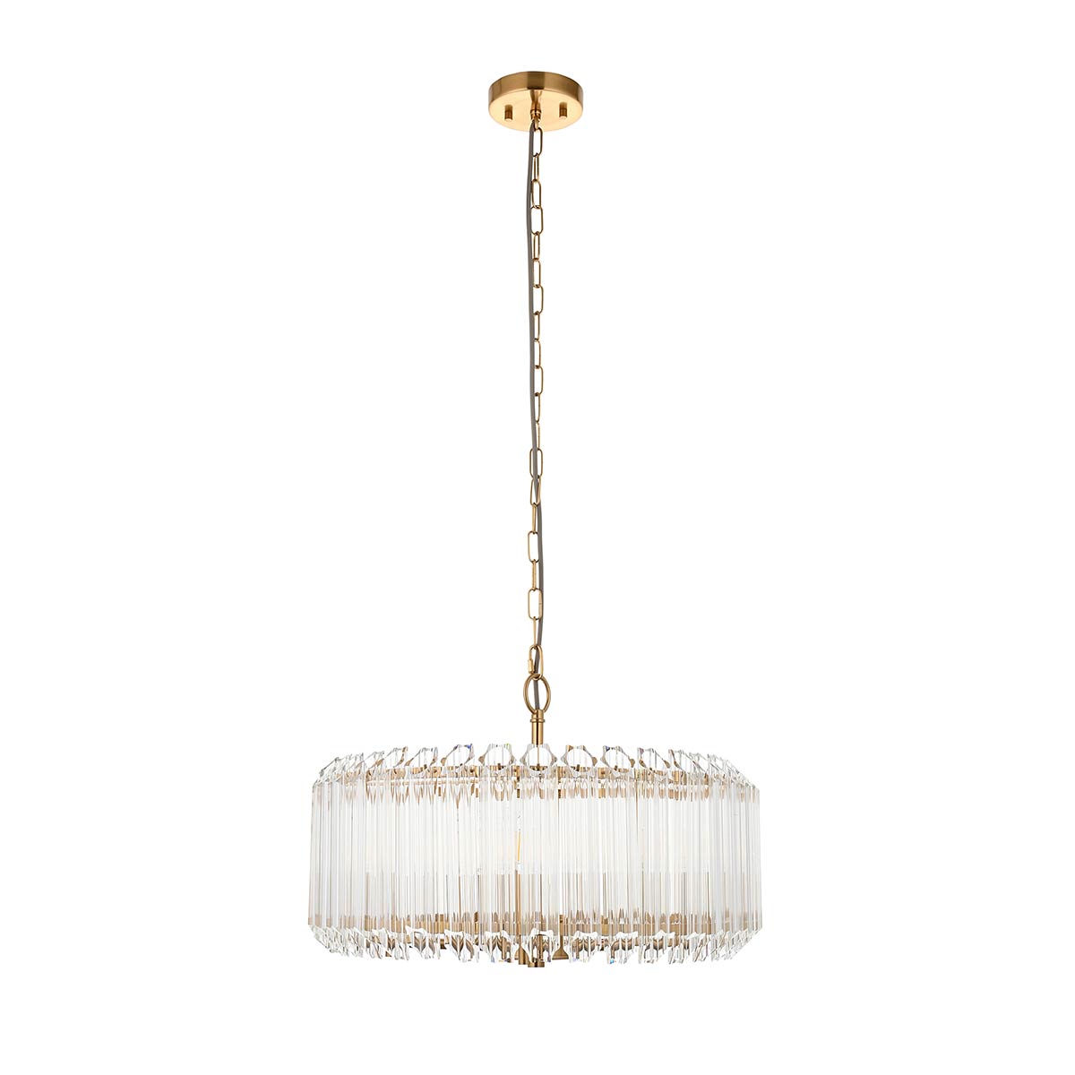 Stunning opulent elegance, the Valentina 5 light pendant in brushed aged brass with large glass rods by Endon Lighting.