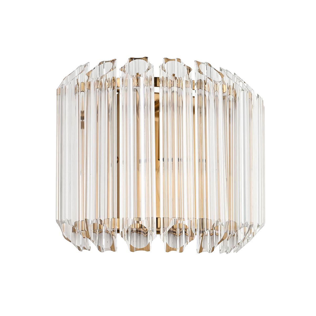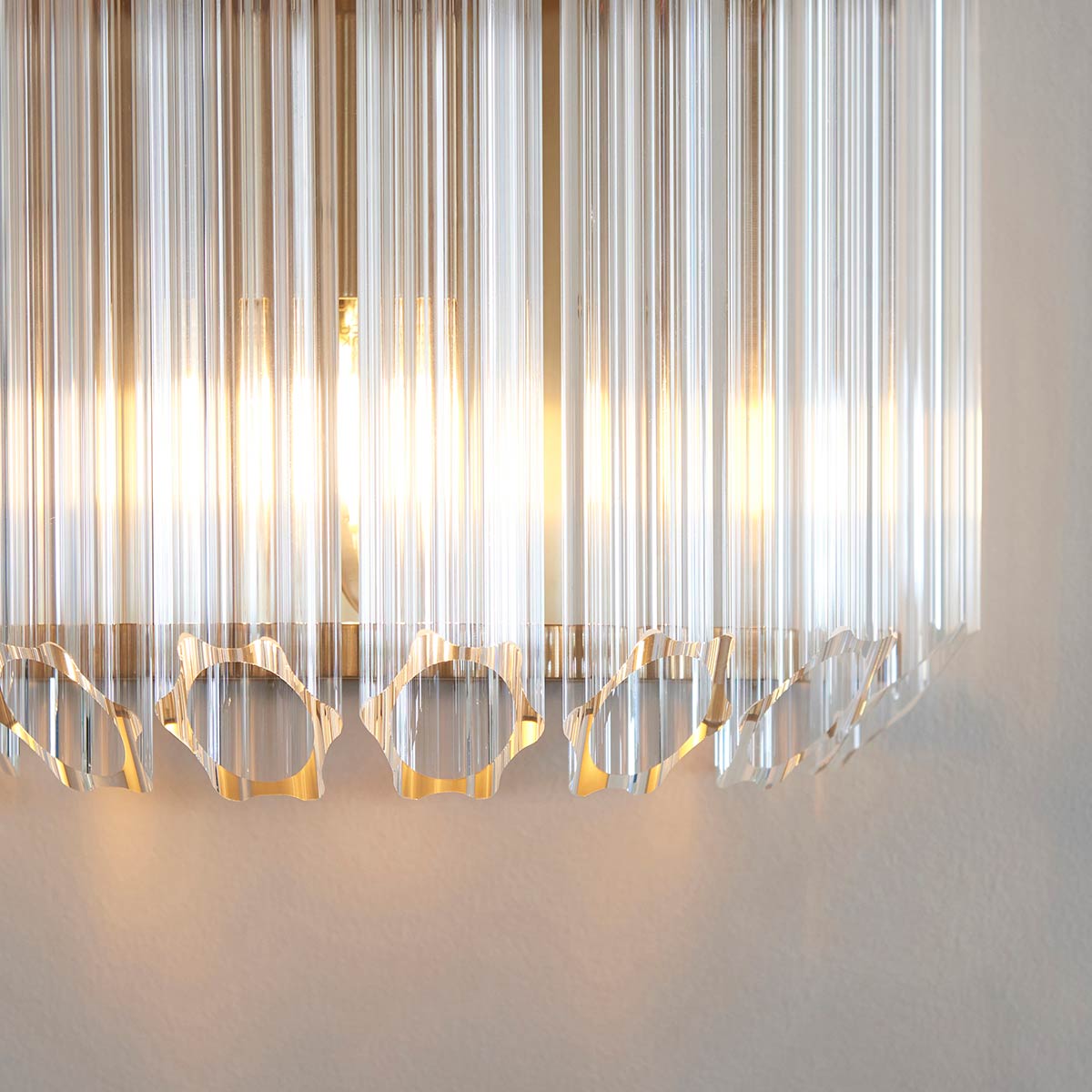 This sophisticated wall light has so much to love. The heavy vertical glass rods completely encapsulate the flawless brushed brass plated curved frame. Light passes through the prisms and creates a wonderful sparkle. And the compact size makes it the ideal size for a bedroom, hallway, living or dining room wall.