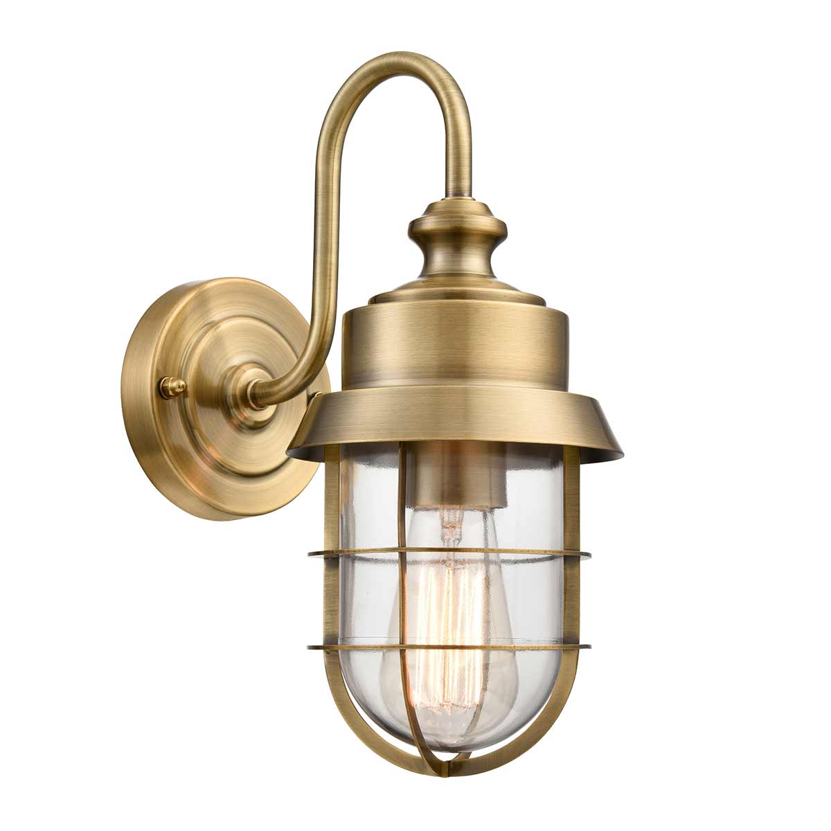 An exterior wall light in antique brass finish, rated IP44 and safe to use in all UK weather. The classic nautical style makes it suitable for traditional and country style homes in particular. Well suited to lighting a porch, entrance door, patio or garden pathway.